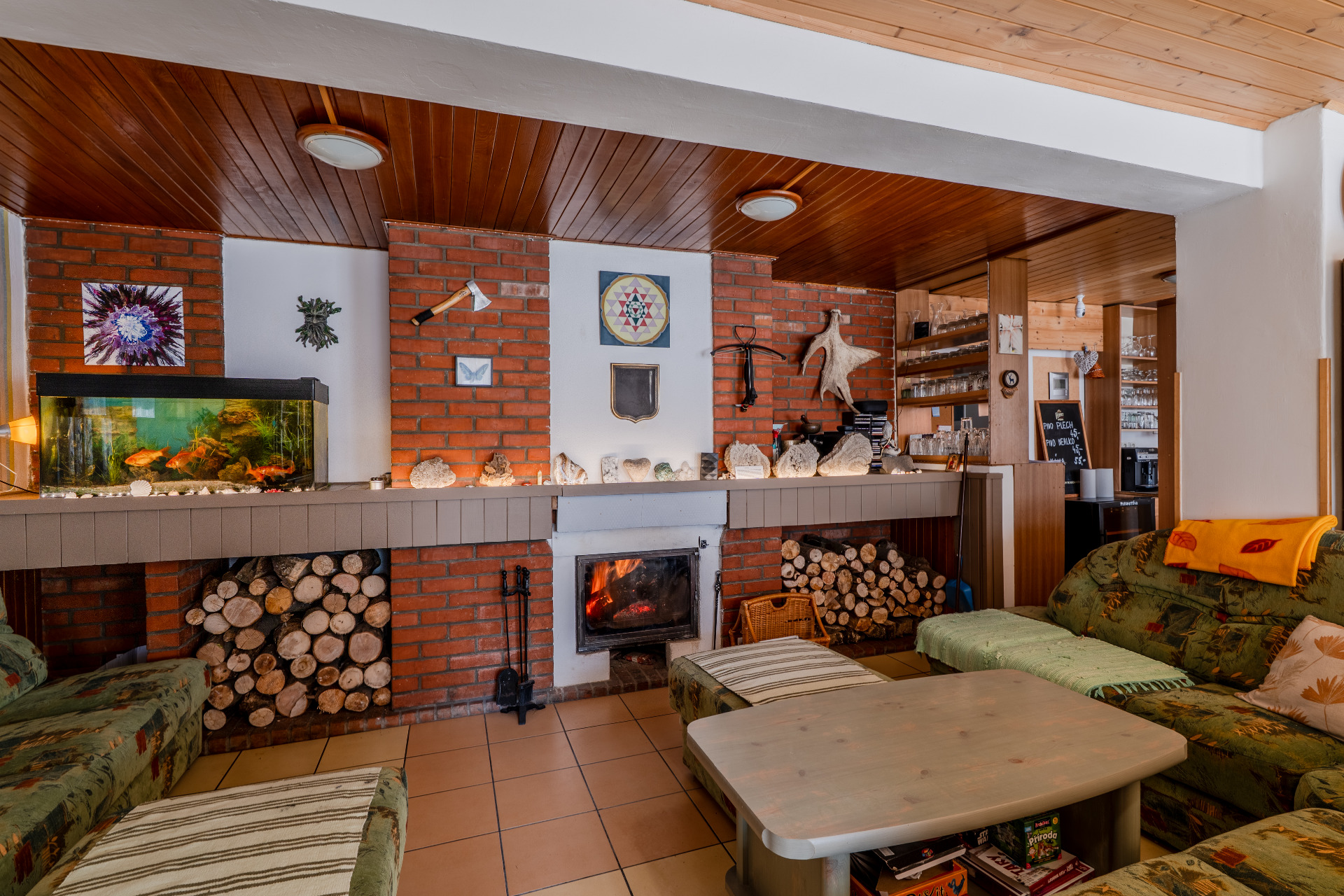 1 místnost: 3x palanda, 1x jednolůžko, rozkládací gauč,